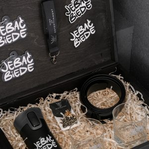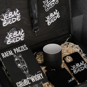 Gratka dla fanów Rafała Paczesia! Wyjątkowy, limitowany box King of Entertainment, czyli zestaw gadżetów King of Entertainment zapakowany w drewniane prezentowe opakowanie. Każdy box zawiera również zapachy samochodowe, wlepki oraz smycz nie dostępne w regularnej sprzedaży. Zawartość boxa: – kubek termiczny – szklanki (do wyboru: 2x Je##ć biede, 2x Gruby wiór lub 1x Je##ć biede…
